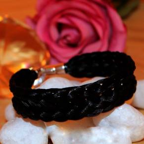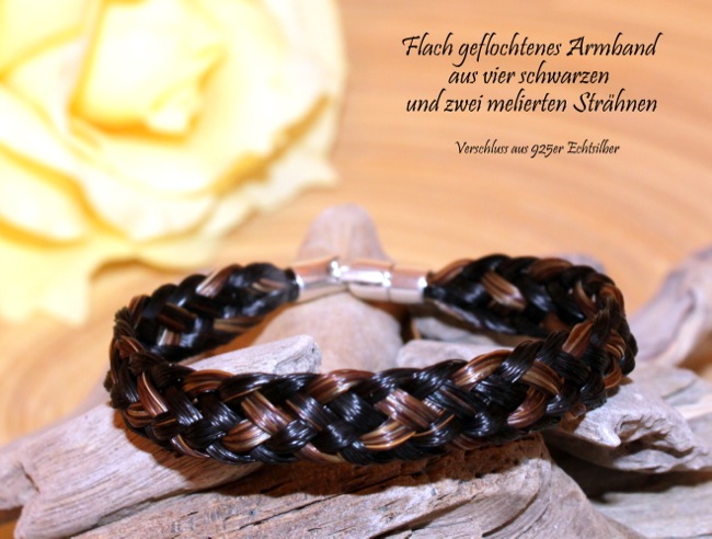 Mehrere Pferdehaarspender lassen sich nur bedingt in dieser Flechtart kombinieren, da bei verschiedenen Haarstrukturen das Schmuckstück nicht mehr grade, sondern ein wenig schlangenlinienförmig wird.