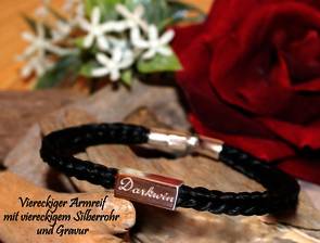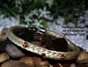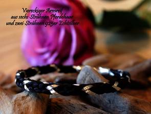 Viereckig geflochtene Schmuckstücke haben auf jeder Seite ein gegenläufiges Fischgrätenmuster. Durch ihre eher markante Form eignet sich diese Form sehr gut für Männerschmuck und Schlüsselanhänger! Aber auch Ohrringe und Kettenanhänger sowie Ringe oder Hasschmuck lassen sich sehr gut in dieser Form fertigen.