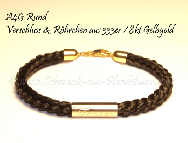 Mit einem runden gravierten Röhrchen (ca. 1,7 cm breit) aus 585er Gelbgold, Namensgravur bis zu 10 Zeichen |