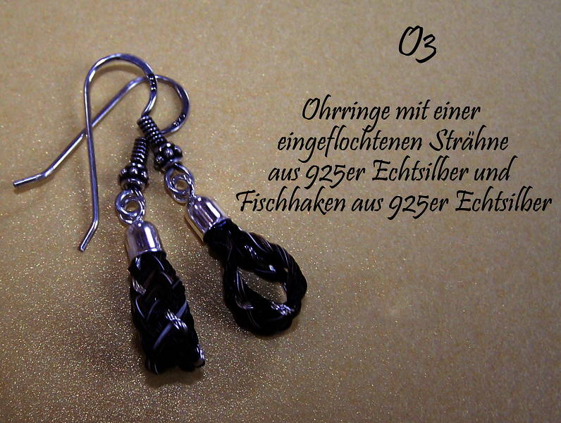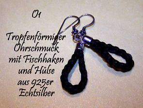 Ohrringe sind entweder tropfenförmig oder zylinderförmig erhältlich. Bei den Tropfen können Sie jede Flechtart wählen. Zylinderförmige gibt es in rund oder eckig geflochten.